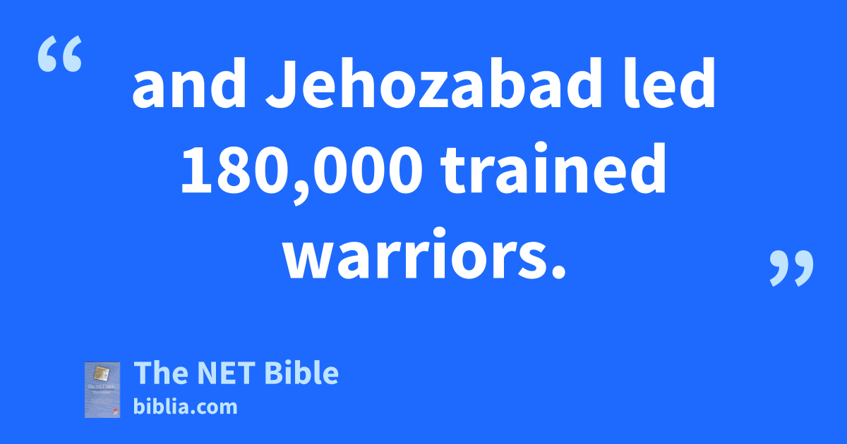 17:17 From Benjamin, Eliada, a skilled warrior, led 200,000 men who were equipped with bows and shields, 17:18 and Jehozabad led 180,000 trained warriors.