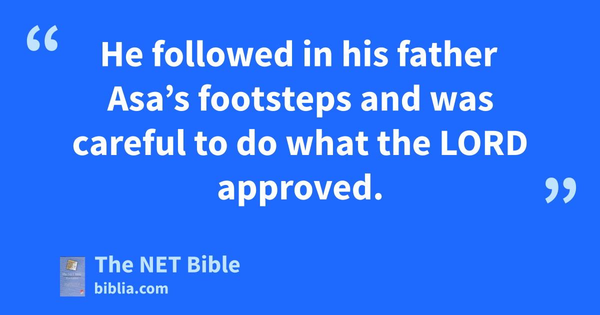 20:31 Jehoshaphat reigned over Judah. He was thirty-five years old when he became king and he reigned for twenty-five years in Jerusalem.52 His mother was Azubah, the daughter of Shilhi. 20:32 He followed in his father Asa’s footsteps and was careful to do what the Lord approved.53 20:33 However, the high places were not eliminated; the people were still not devoted to the God of their ancestors.54