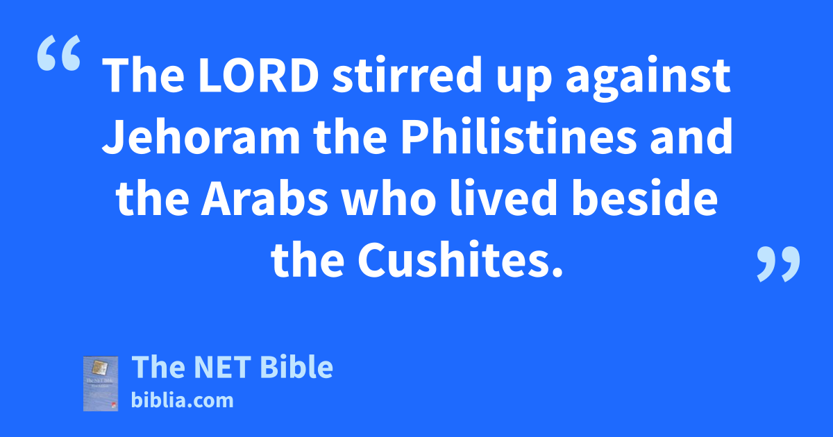 21:16 The Lord stirred up against Jehoram the Philistines30 and the Arabs who lived beside the Cushites. 21:17 They attacked Judah and swept through it.31 They carried off everything they found in the royal palace,32 including his sons and wives. None of his sons was left, except for his youngest, Ahaziah. 21:18 After all this happened, the Lord afflicted him with an incurable intestinal disease.33 21:19 After about two years his intestines came out because of the disease, so that he died a very painful death.34 His people did not make a bonfire to honor him, as they had done for his ancestors.35