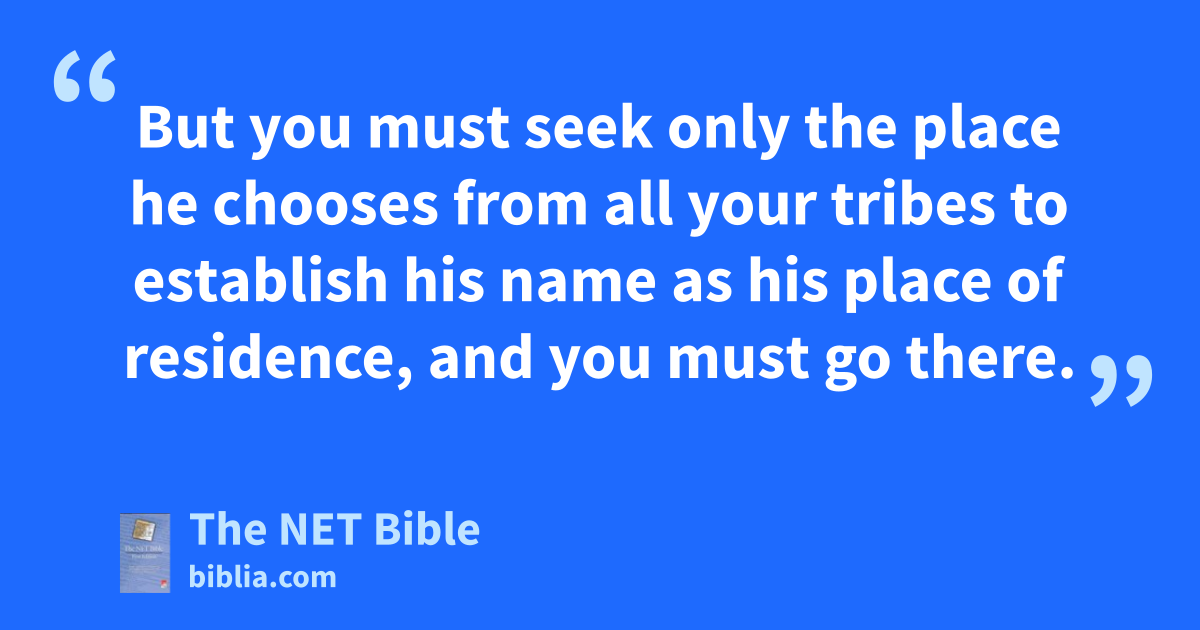 12:1 These are the statutes and ordinances you must be careful to obey as long as you live in the land the Lord, the God of your ancestors,1 has given you to possess.2 12:2 You must by all means destroy3 all the places where the nations you are about to dispossess worship their gods—on the high mountains and hills and under every leafy tree.4 12:3 You must tear down their altars, shatter their sacred pillars,5 burn up their sacred Asherah poles,6 and cut down the images of their gods; you must eliminate their very memory from that place. 12:4 You must not worship the Lord your God the way they worship. 12:5 But you must seek only the place he7 chooses from all your tribes to establish his name as his place of residence,8 and you must go there. 12:6 And there you must take your burnt offerings, your sacrifices, your tithes, the personal offerings you have prepared,9 your votive offerings, your freewill offerings, and the firstborn of your herds and flocks. 12:7 Both you and your families10 must feast there before the Lord your God and rejoice in all the output of your labor with which he11 has blessed you. 12:8 You must not do like we are doing here today, with everyone12 doing what seems best to him, 12:9 for you have not yet come to the final stop13 and inheritance the Lord your God is giving you. 12:10 When you do go across the Jordan River14 and settle in the land he15 is granting you as an inheritance and you find relief from all the enemies who surround you, you will live in safety.16 12:11 Then you must come to the place the Lord your God chooses for his name to reside, bringing17 everything I am commanding you—your burnt offerings, sacrifices, tithes, the personal offerings you have prepared,18 and all your choice votive offerings which you devote to him.19 12:12 You shall rejoice in the presence of the Lord your God, along with your sons, daughters, male and female servants, and the Levites in your villages20 (since they have no allotment or inheritance with you).21 12:13 Make sure you do not offer burnt offerings in any place you wish, 12:14 for you may do so22 only in the place the Lord chooses in one of your tribal areas—there you may do everything I am commanding you.23