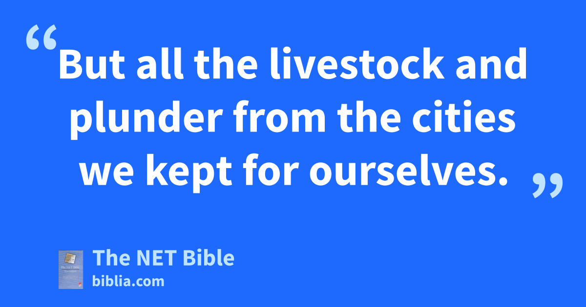 3:1 Next we set out on1 the route to Bashan,2 but King Og of Bashan and his whole army3 came out to meet us in battle at Edrei.4 3:2 The Lord, however, said to me, “Don’t be afraid of him because I have already given him, his whole army,5 and his land to you. You will do to him exactly what you did to King Sihon of the Amorites who lived in Heshbon.” 3:3 So the Lord our God did indeed give over to us King Og of Bashan and his whole army and we struck them down until not a single survivor was left.6 3:4 We captured all his cities at that time—there was not a town we did not take from them—sixty cities, all the region of Argob,7 the dominion of Og in Bashan. 3:5 All of these cities were fortified by high walls, gates, and locking bars;8 in addition there were a great many open villages.9 3:6 We put all of these under divine judgment10 just as we had done to King Sihon of Heshbon—every occupied city,11 including women and children. 3:7 But all the livestock and plunder from the cities we kept for ourselves. 3:8 So at that time we took the land of the two Amorite kings in the Transjordan from Wadi Arnon to Mount Hermon12 3:9 (the Sidonians13 call Hermon Sirion14 and the Amorites call it Senir),15 3:10 all the cities of the plateau, all of Gilead and Bashan as far as Salecah16 and Edrei,17 cities of the kingdom of Og in Bashan. 3:11 Only King Og of Bashan was left of the remaining Rephaites. (It is noteworthy18 that his sarcophagus19 was made of iron.20 Does it not, indeed, still remain in Rabbath21 of the Ammonites? It is thirteen and a half feet22 long and six feet23 wide according to standard measure.)24