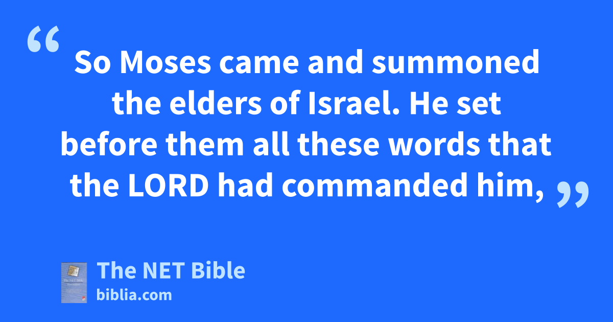 19:7 So Moses came and summoned the elders of Israel. He set before them all these words that the Lord had commanded him, 19:8 and all the people answered together, “All that the Lord has commanded we will do!”17 So Moses brought the words of the people back to the Lord.