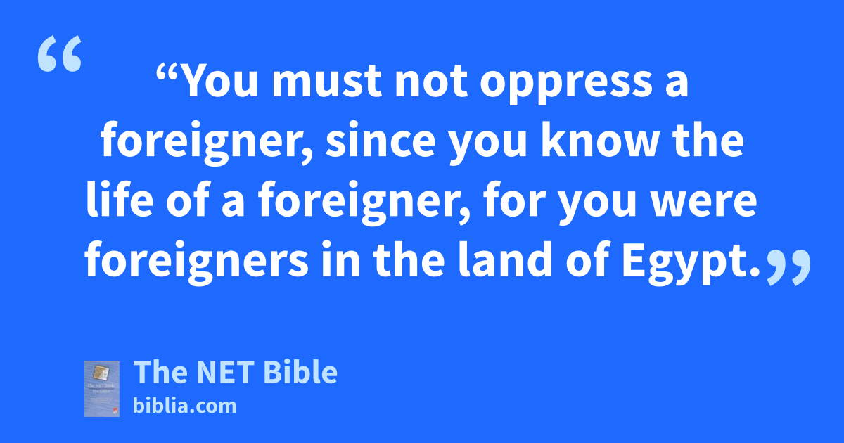23:9 “You must not oppress21 a foreigner, since you know the life22 of a foreigner, for you were foreigners in the land of Egypt.
