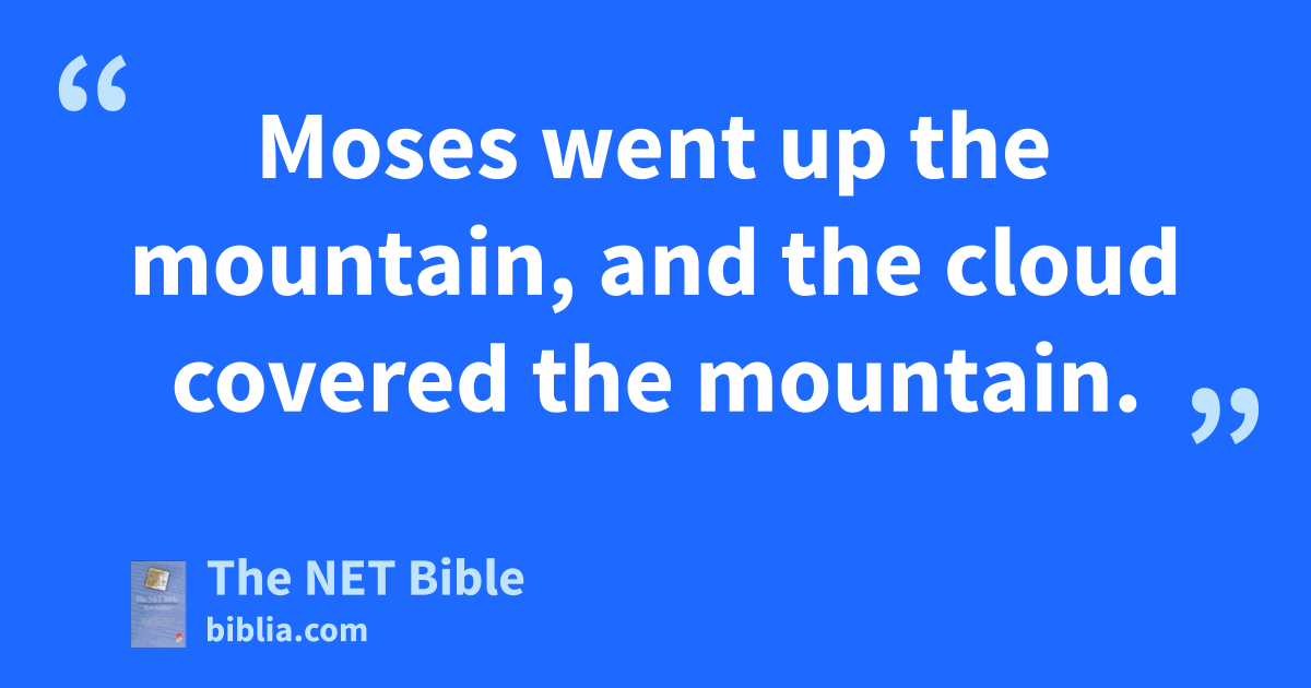 24:15 Moses went up the mountain, and the cloud covered the mountain. 24:16 The glory of the Lord resided41 on Mount Sinai, and the cloud covered it for six days.42 On the seventh day he called to Moses from within the cloud. 24:17 Now the appearance of the glory of the Lord was like a devouring fire on the top of the mountain in plain view43 of the people. 24:18 Moses went into the cloud when he went up44 the mountain, and Moses was on the mountain forty days and forty nights.45