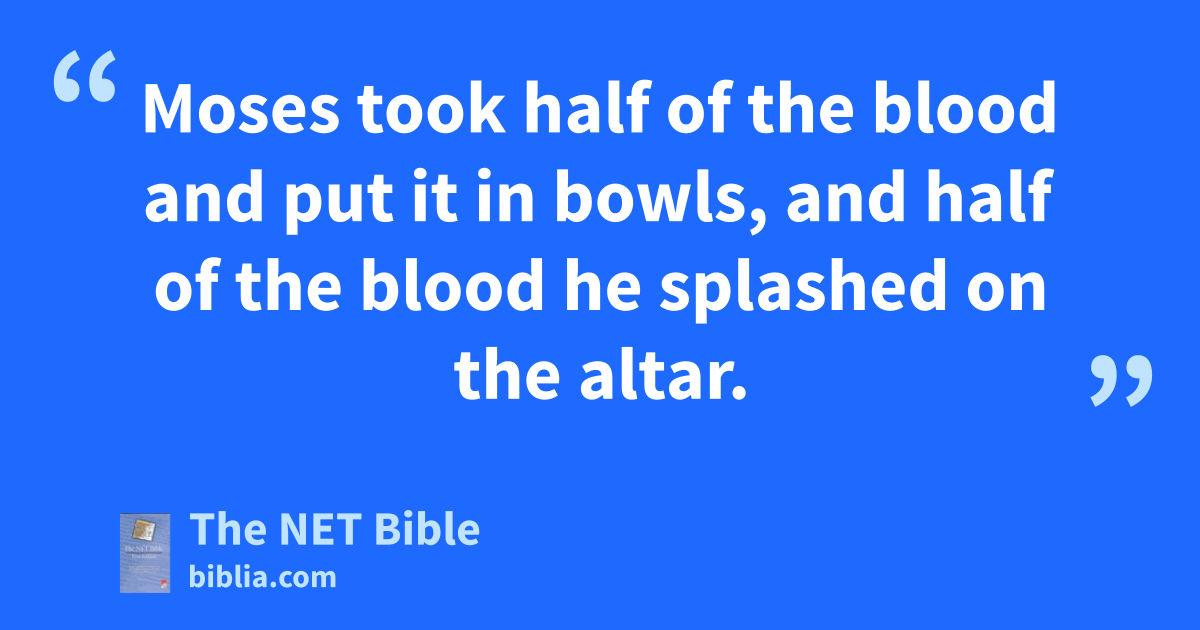 24:3 Moses came8 and told the people all the Lord’s words9 and all the decisions. All the people answered together,10 “We are willing to do11 all the words that the Lord has said,” 24:4 and Moses wrote down all the words of the Lord. Early in the morning he built12 an altar at the foot13 of the mountain and arranged14 twelve standing stones15—according to the twelve tribes of Israel. 24:5 He sent young Israelite men,16 and they offered burnt offerings and sacrificed young bulls for peace offerings17 to the Lord. 24:6 Moses took half of the blood and put it in bowls, and half of the blood he splashed on the altar.18 24:7 He took the Book of the Covenant19 and read it aloud20 to the people, and they said, “We are willing to do and obey21 all that the Lord has spoken.” 24:8 So Moses took the blood and splashed it on22 the people and said, “This is the blood of the covenant23 that the Lord has made with you in accordance with all these words.”