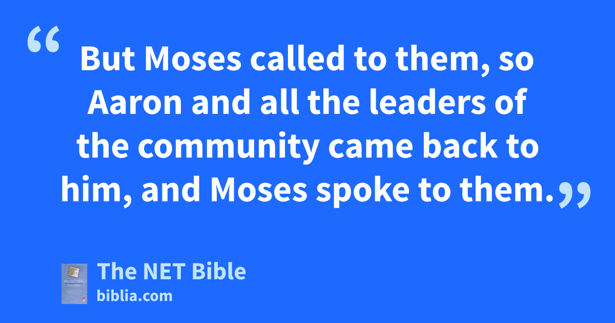 34:29 62 Now when Moses came down63 from Mount Sinai with64 the two tablets of the testimony in his hand65—when he came down66 from the mountain, Moses67 did not know that the skin of his face shone68 while he talked with him. 34:30 When Aaron and all the Israelites saw Moses, the skin of his face shone;69 and they were afraid to approach him. 34:31 But Moses called to them, so Aaron and all the leaders of the community came back to him, and Moses spoke to them. 34:32 After this all the Israelites approached, and he commanded them all that the Lord had spoken to him on Mount Sinai. 34:33 When Moses finished70 speaking71 with them, he would72 put a veil on his face. 34:34 But when Moses went in73 before the Lord to speak with him, he would remove the veil until he came out.74 Then he would come out and tell the Israelites what he had been commanded.75 34:35 When the Israelites would see76 the face of Moses, that77 the skin of Moses’ face shone, Moses would put the veil on his face again, until he went in to speak with the Lord.78