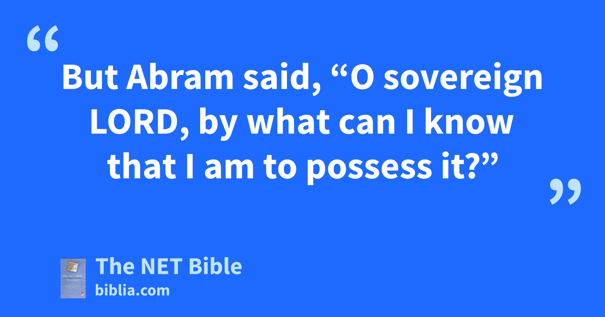 15:7 The Lord said24 to him, “I am the Lord25 who brought you out from Ur of the Chaldeans26 to give you this land to possess.” 15:8 But27 Abram28 said, “O sovereign Lord,29 by what30 can I know that I am to possess it?”