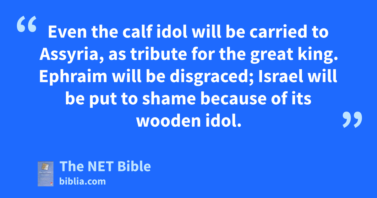 10:5 The inhabitants8 of Samaria will lament9 over the calf idol10 of Beth Aven.11
