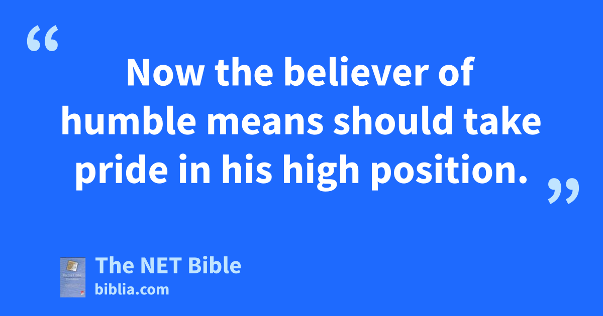 1:9 Now the believer7 of humble means8 should take pride9 in his high position.10 1:10 But the rich person’s pride should be in his humiliation, because he will pass away like a wildflower in the meadow.11 1:11 For the sun rises with its heat and dries up the meadow; the petal of the flower falls off and its beauty is lost forever.12 So also the rich person in the midst of his pursuits will wither away. 1:12 Happy is the one13 who endures testing, because when he has proven to be genuine, he will receive the crown of life that God14 promised to those who love him. 1:13 Let no one say when he is tempted, “I am tempted by God,” for God cannot be tempted by evil,15 and he himself tempts no one. 1:14 But each one is tempted when he is lured and enticed by his own desires. 1:15 Then when desire conceives, it gives birth to sin, and when sin is full grown, it gives birth to death. 1:16 Do not be led astray, my dear brothers and sisters.16 1:17 All generous giving and every perfect gift17 is from above, coming down18 from the Father of lights, with whom there is no variation or the slightest hint of change.19 1:18 By his sovereign plan he gave us birth20 through the message of truth, that we would be a kind of firstfruits of all he created.