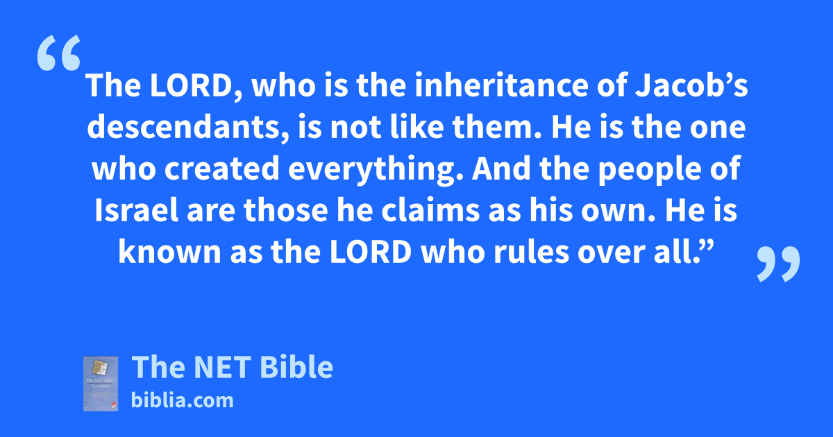 10:16 The Lord, who is the inheritance32 of Jacob’s descendants,33 is not like them.