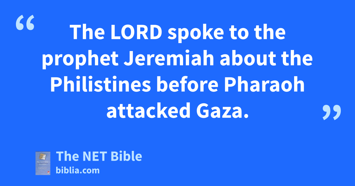 47:1 The Lord spoke to the prophet Jeremiah1 about the Philistines before Pharaoh attacked Gaza.2