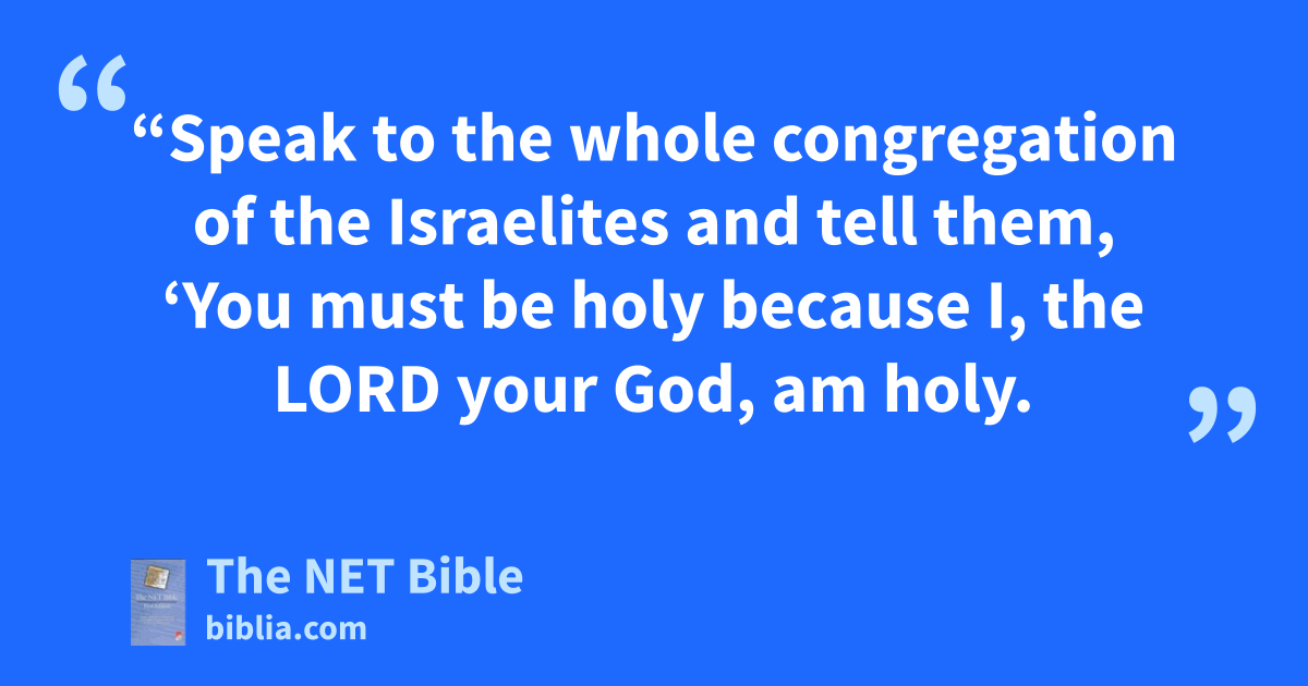 19:1 The Lord spoke to Moses: 19:2 “Speak to the whole congregation of the Israelites and tell them, ‘You must be holy because I, the Lord your God, am holy. 19:3 Each of you must respect his mother and his father,1 and you must keep my Sabbaths. I am the Lord your God. 19:4 Do not turn to idols,2 and you must not make for yourselves gods of cast metal. I am the Lord your God.