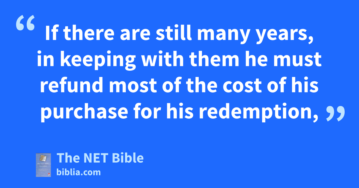 25:47 “ ‘If a resident foreigner who is with you prospers87 and your brother becomes impoverished with regard to him so that88 he sells himself to a resident foreigner who is with you or to a member89 of a foreigner’s family, 25:48 after he has sold himself he retains a right of redemption.90 One of his brothers may redeem him, 25:49 or his uncle or his cousin91 may redeem him, or anyone of the rest of his blood relatives—his family92—may redeem him, or if93 he prospers he may redeem himself. 25:50 He must calculate with the one who bought him the number of years94 from the year he sold himself to him until the jubilee year, and the cost of his sale must correspond to the number of years, according to the rate of wages a hired worker would have earned while with him.95 25:51 If there are still many years, in keeping with them96 he must refund most of the cost of his purchase for his redemption, 25:52 but if only a few years remain97 until the jubilee, he must calculate for himself in keeping with the remaining years and refund it for his redemption. 25:53 He must be with the one who bought him98 like a yearly hired worker.99 The one who bought him100 must not rule over him harshly in your sight. 25:54 If, however,101 he is not redeemed in these ways, he must go free102 in the jubilee year, he and his children with him, 25:55 because the Israelites are my own servants;103 they are my servants whom I brought out from the land of Egypt. I am the Lord your God.