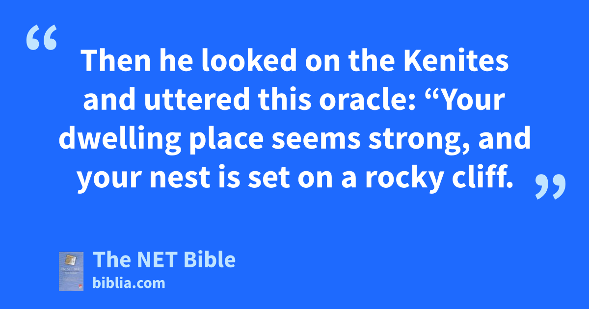 24:21 Then he looked on the Kenites and uttered this oracle:
