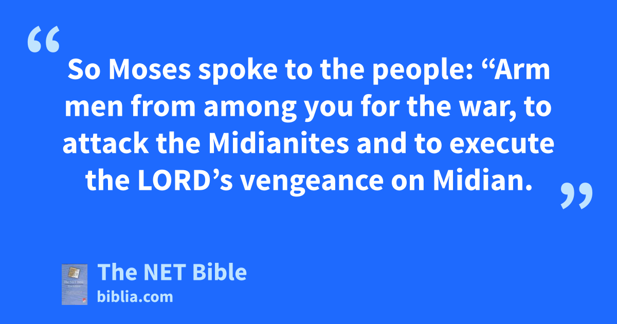 31:1 1 The Lord spoke to Moses: 31:2 “Exact vengeance2 for the Israelites on the Midianites3—after that you will be gathered to your people.”4