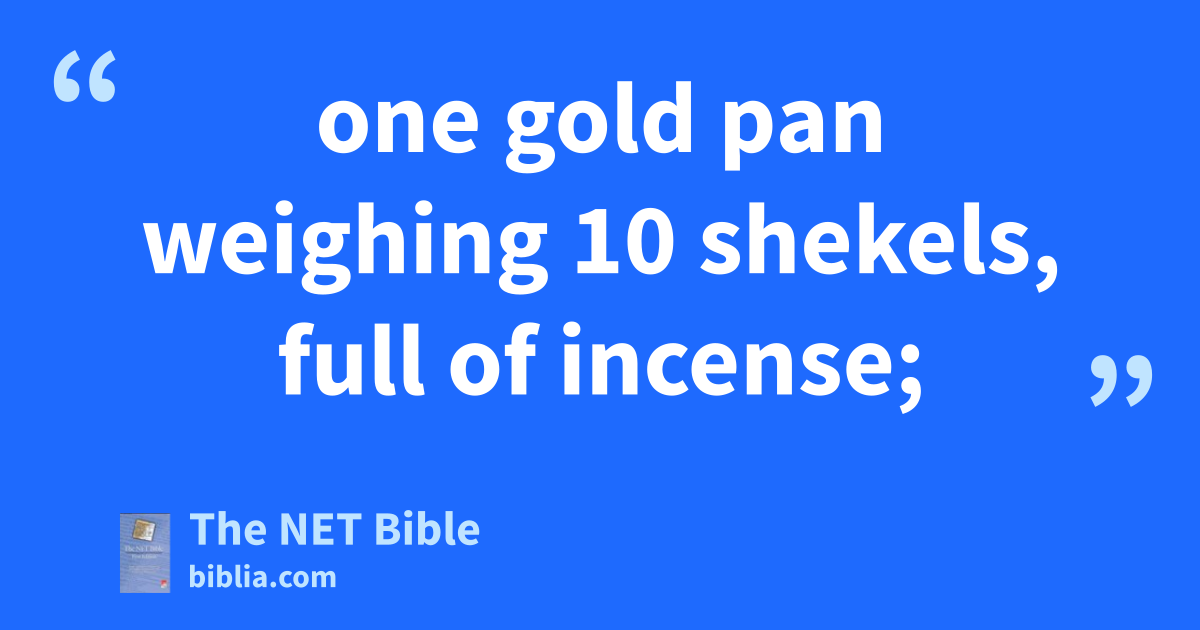 7:24 On the third day Eliab son of Helon, leader of the Zebulunites, presented an offering.24 7:25 His offering was one silver platter weighing 130 shekels and one silver sprinkling bowl weighing 70 shekels, both according to the sanctuary shekel, each of them full of fine flour mixed with olive oil as a grain offering; 7:26 one gold pan weighing 10 shekels, full of incense; 7:27 one young bull, one ram, and one male lamb in its first year, for a burnt offering; 7:28 one male goat for a purification offering; 7:29 and for the sacrifice of peace offerings: two bulls, five rams, five male goats, and five male lambs in their first year. This was the offering of Eliab son of Helon.