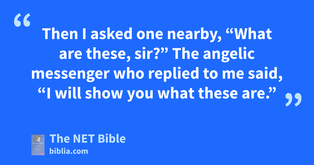 1:9 Then I asked one nearby, “What are these, sir?” The angelic messenger14 who replied to me said, “I will show you what these are.” 1:10 Then the man standing among the myrtle trees spoke up and said, “These are the ones whom the Lord has sent to walk about15 on the earth.” 1:11 The riders then agreed with the angel of the Lord,16 who was standing among the myrtle trees, “We have been walking about on the earth, and now everything is at rest and quiet.” 1:12 The angel of the Lord then asked, “Lord who rules over all,17 how long before you have compassion on Jerusalem18 and the other cities of Judah which you have been so angry with for these seventy years?”19 1:13 The Lord then addressed good, comforting words to the angelic messenger who was speaking to me. 1:14 Turning to me, the messenger then said, “Cry out that the Lord who rules over all says, ‘I am very much moved20 for Jerusalem and for Zion. 1:15 But I am greatly displeased with the nations that take my grace for granted.21 I was a little displeased with them, but they have only made things worse for themselves.