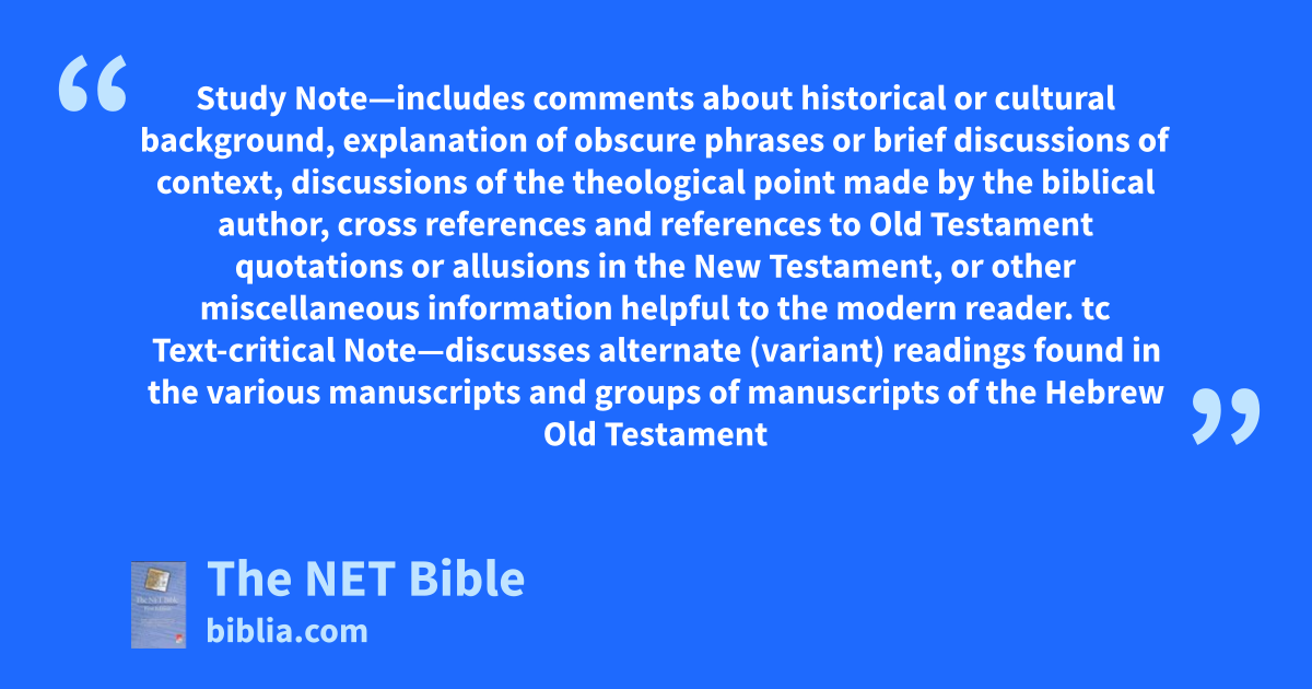 tc | Text-critical Note—discusses alternate (variant) readings found in the various manuscripts and groups of manuscripts of the Hebrew Old Testament and Greek New Testament. |