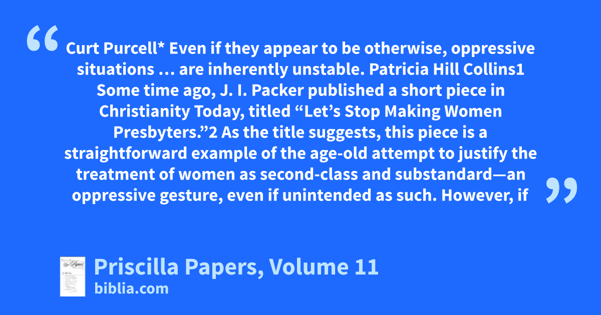 Priscilla Papers is a quarterly journal published by Christians for Biblical Equality in order to provide articles on biblical interpretation, theology, church history, and other academic disciplines as they relate to men and women offering mutual service in the church, home, and world. Priscilla Papers is intended for original scholars and opinion leaders, serious Bible students, egalitarians...