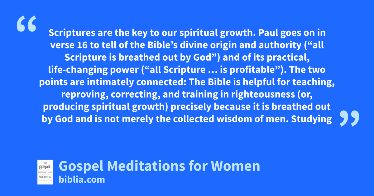 Gospel Meditations for Women is a month-long devotional that focuses on Christian living. It addresses topics like singleness, marriage, and motherhood. Each day’s article includes Scripture reading, unpacks a portion of the passage, and concludes with an application to everyday life.