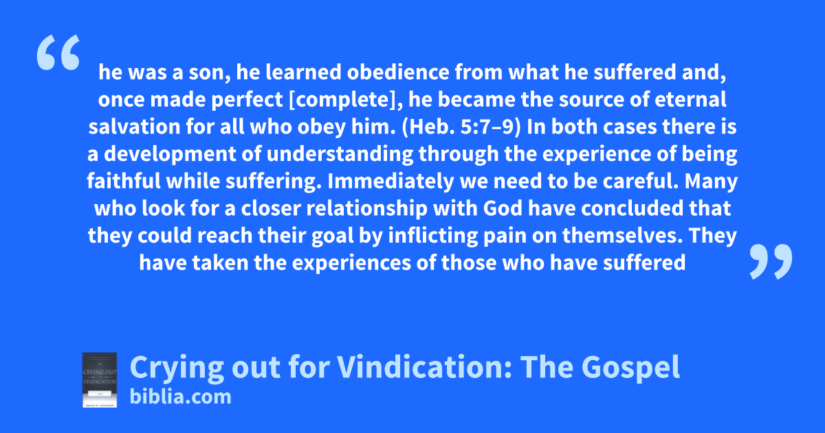 he was a son, he learned obedience from what he suffered and, once made perfect [complete], he became the source of eternal salvation for all who obey him. (Heb. 5:7–9) In both cases there is a development of understanding through the experience of being faithful while suffering. Immediately we need to be careful. Many who look for a closer relationship with God have concluded that they could reach their goal by inflicting pain on themselves. They have taken the experiences of those who have suffered