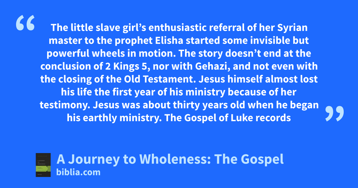The little slave girl’s enthusiastic referral of her Syrian master to the prophet Elisha started some invisible but powerful wheels in motion. The story doesn’t end at the conclusion of 2 Kings 5, nor with Gehazi, and not even with the closing of the Old Testament. Jesus himself almost lost his life the first year of his ministry because of her testimony. Jesus was about thirty years old when he began his earthly ministry. The Gospel of Luke records