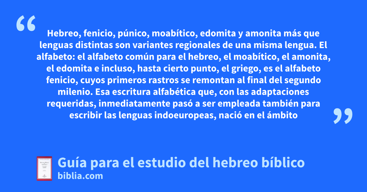 Hebreo, fenicio, púnico, moabítico, edomita y amonita más que lenguas distintas son variantes regionales de una misma lengua. El alfabeto: el alfabeto común para el hebreo, el moabítico, el amonita, el edomita e incluso, hasta cierto punto, el griego, es el alfabeto fenicio, cuyos primeros rastros se remontan al final del segundo milenio. Esa escritura alfabética que, con las adaptaciones requeridas, inmediatamente pasó a ser empleada también para escribir las lenguas indoeuropeas, nació en el ámbito