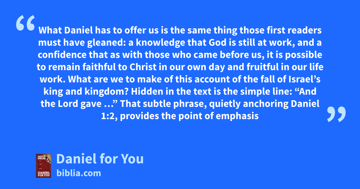 We live in difficult times to be people who obey God and worship him alone. How can we be confident under pressure and faithful in the fire? In this readable, accessible, exciting volume walking through one of the best-loved books of the Bible, David Helm shows how Daniel and his friends learned how to live in Babylon, far from their home in God’s land—and how we can do the same.