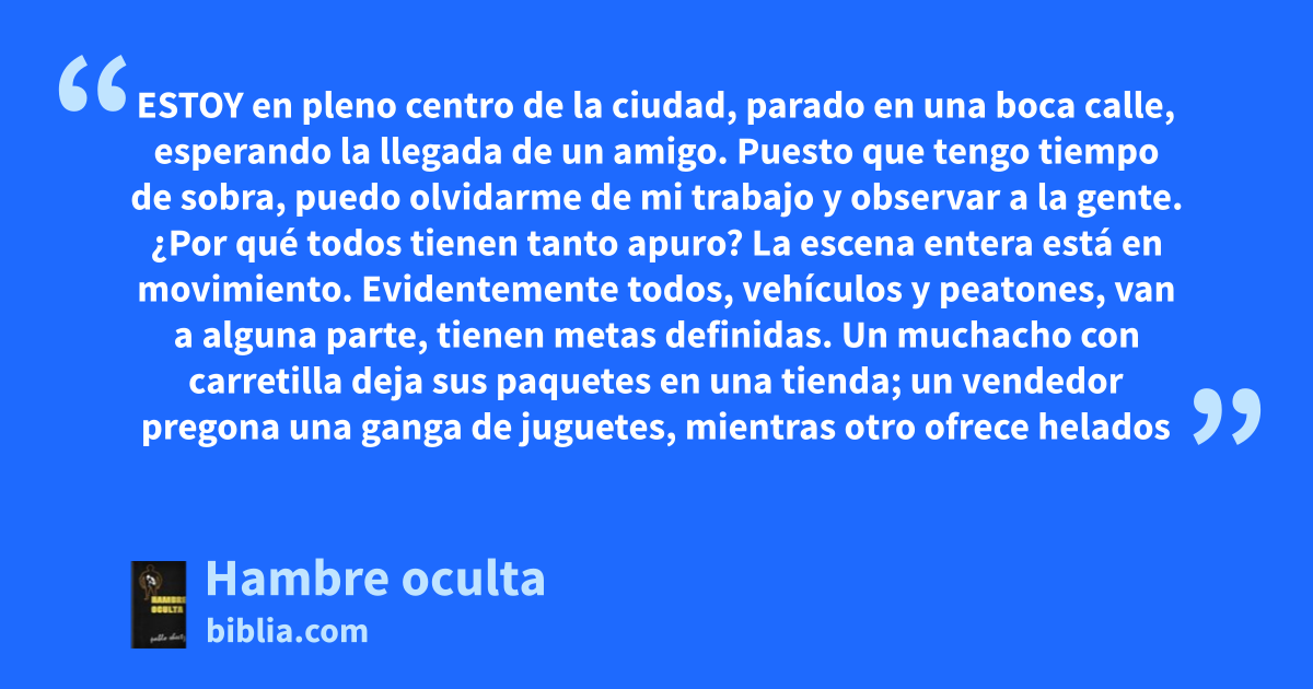 La personalidad del ser humano encierra distintos tipos de hambre y apetito, y es muy fácil confundir lo emocional con lo físico. Este libro señala cómo distinguir entre los distintos apetitos y cómo satisfacer los más ocultos, que son los del espíritu.