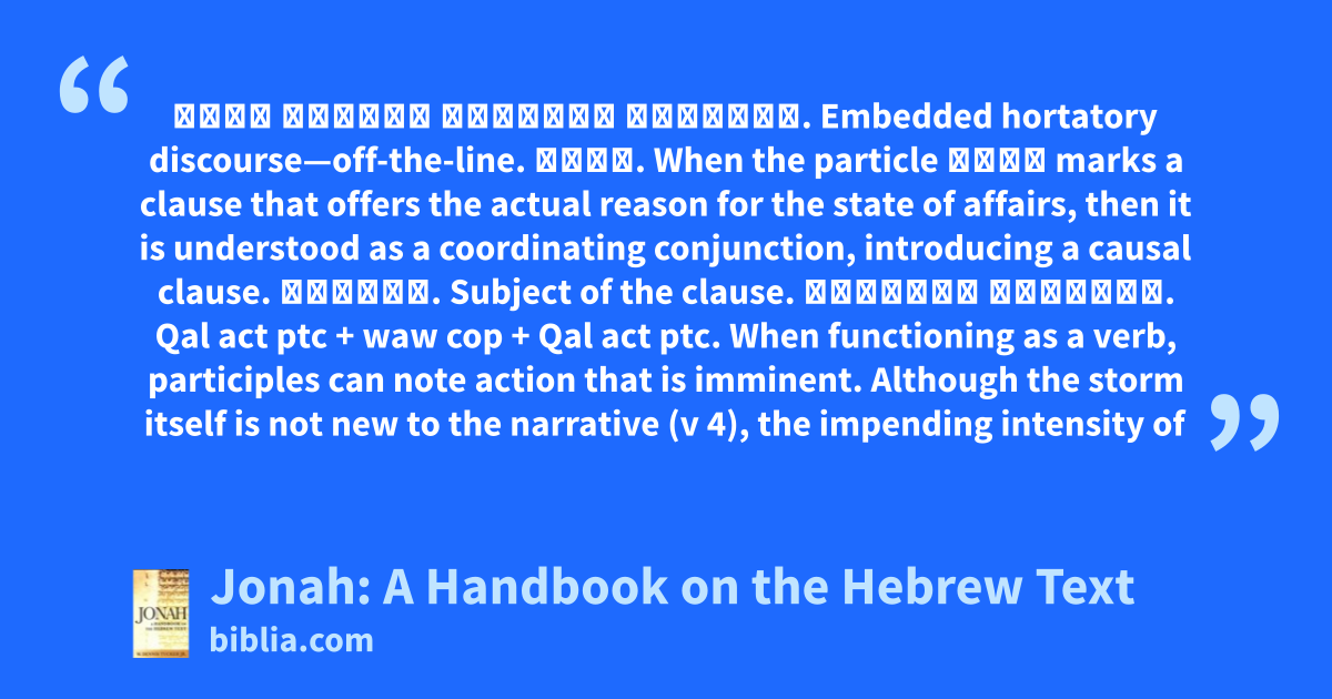 Jonah: A Handbook on the Hebrew Text takes the study of the grammar of this narrative to the next level. This volume addresses important questions and issues relating to Hebrew syntax in Jonah and provides clarity to the student or pastor seeking to better understand how to interpret the biblical text.