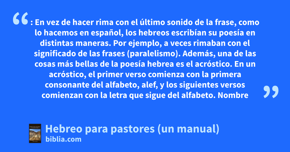 Este libro es una ayuda para ser utilizado junto con el libro, HEBREO PARA PASTORES, por Josías Grauman. Más que todo, este manual le servirá para recordarle por qué está aprendiendo hebreo. Al inicio, cuando está memorizando muchas palabras y cuadros, es fácil perderse en los detalles y olvidar el objetivo de todo. Con esto en mente, este libro únicamente tiene versículos bíblicos para traducir...