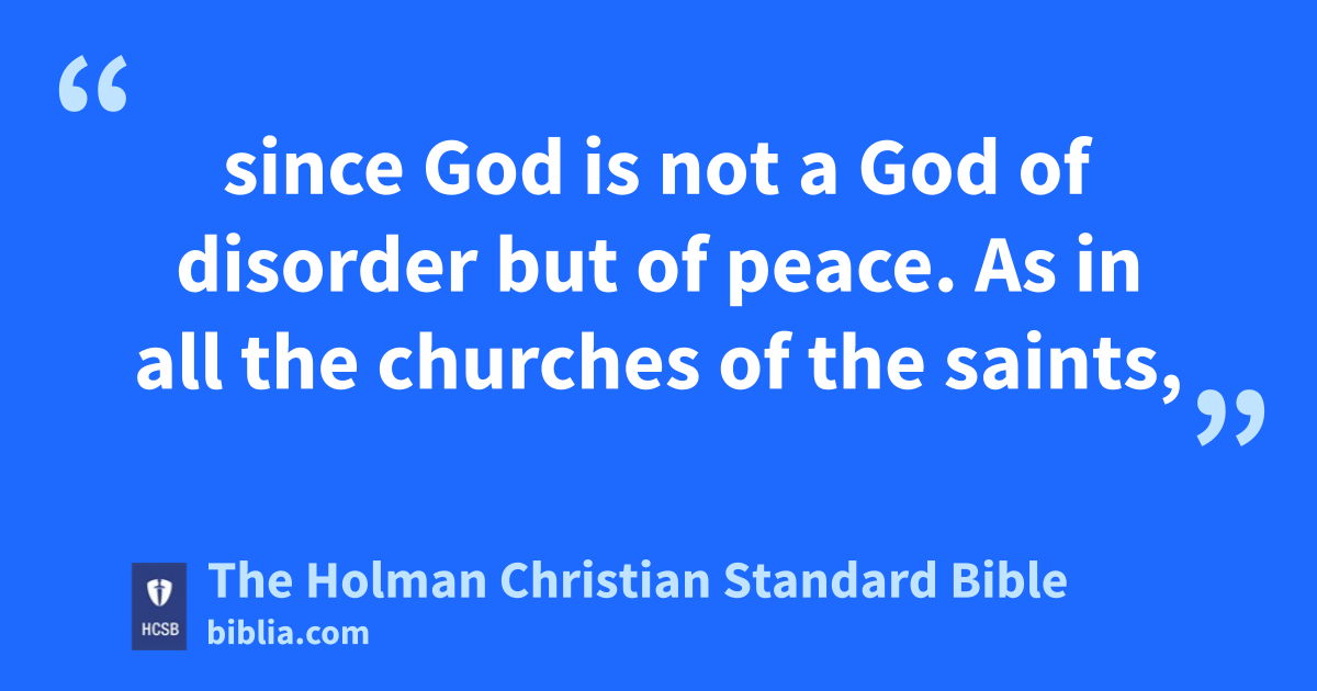 26 What then is the conclusion, brothers? Whenever you come together, each one g has a psalm, a teaching, a revelation, another language, or an interpretation. h All things must be done for edification. 27 If any person speaks in another language, there should be only two, or at the most three, each in turn, and someone must interpret. 28 But if there is no interpreter, that person should keep silent in the church and speak to himself and to God. 29 Two or three prophets should speak, and the others should evaluate. i 30 But if something has been revealed to another person sitting there, the first prophet should be silent. 31 For you can all prophesy one by one, so that everyone may learn and everyone may be encouraged. j 32 And the prophets’ spirits are under the control of the prophets, 33 since God is not a God of disorder but of peace.