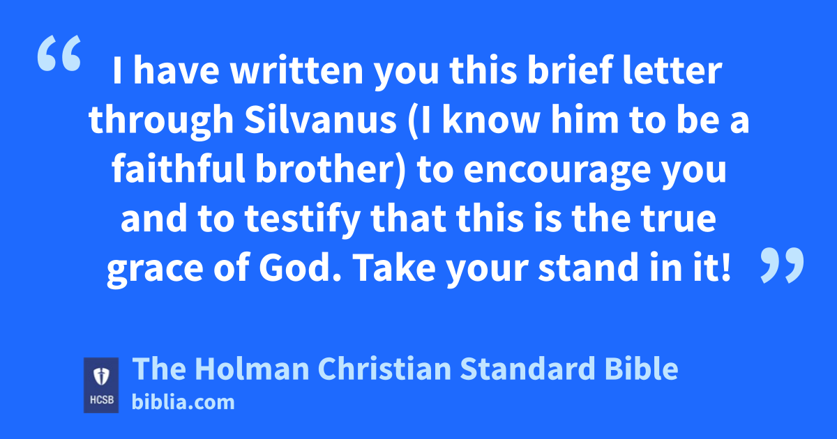 12 I have written you this brief letter through Silvanus g h (I know him to be a faithful brother) to encourage you and to testify that this is the true grace of God. Take your stand in it! 13 The church in Babylon, i j also chosen, sends you greetings, as does Mark, my son. 14 Greet one another with a kiss of love. k Peace l to all of you who are in Christ. m