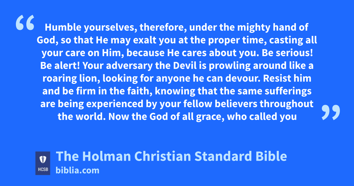 6 Humble t yourselves, therefore, under the mighty hand u of God, so that He may exalt you at the proper time, v 7 casting all your care on Him, because He cares about you. w