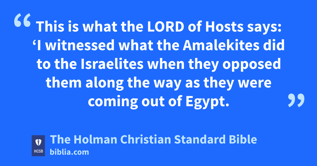 15 Samuel told Saul, “The Lord sent me to anoint you as king over His people Israel. l Now, listen to the words of the Lord. 2 This is what the Lord of * Hosts says: ‘I witnessed m what the Amalekites did to the Israelites when they opposed them along the way as they were coming out of Egypt. n 3 Now go and attack the Amalekites and * completely destroy everything they have. o Do not spare them. Kill men and women, children and infants, oxen and sheep, camels and donkeys.’ ” p