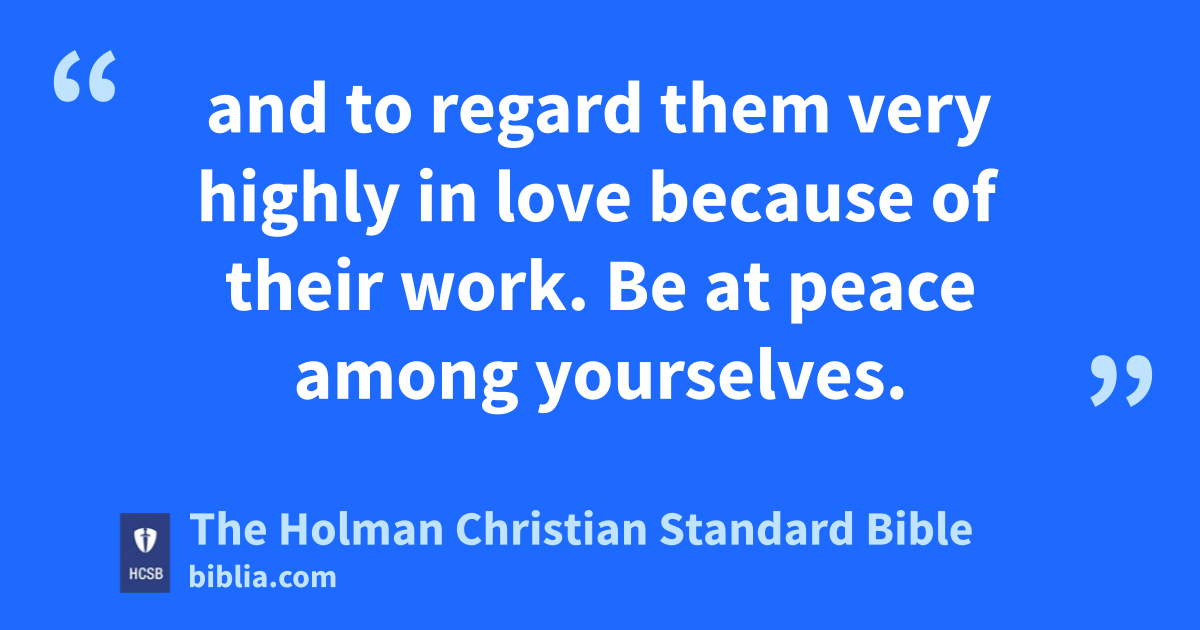 12 Now we ask you, brothers, to give recognition n to those who labor among you and lead you in the Lord and admonish you, 13 and to regard them very highly in love because of their work. Be at peace o among yourselves. 14 And we exhort you, brothers: p warn those who are irresponsible, q comfort the discouraged, help the weak, be patient r with everyone. 15 See to it that no one repays evil for evil s to anyone, t but always pursue what is good for one another and for all. u
