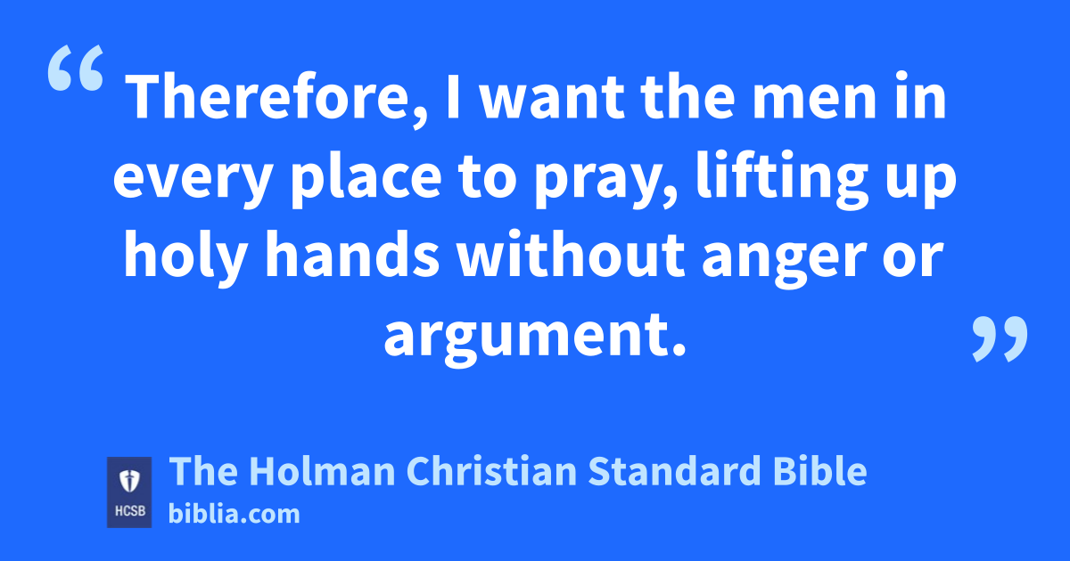 8 Therefore, I want the men in every place to pray, lifting up holy hands without anger or argument. n 9 Also, the women are to dress themselves in modest clothing, o with decency and good sense, not with elaborate hairstyles, gold, p pearls, or expensive apparel, 10 but with good works, q as is proper for women who affirm that they worship God. 11 A woman should learn in silence with full submission. r 12 I do not allow a woman to teach or to have authority over a man; instead, she is to be silent. 13 For Adam was created first, then Eve. s 14 And Adam was not deceived, but the woman was deceived and transgressed. t 15 But she will be saved through childbearing, if she continues u in faith, love, and holiness, v with good judgment.