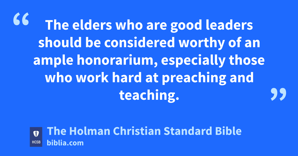 17 The elders who are good leaders should be considered worthy of an ample honorarium, w especially those who work hard x at preaching and teaching. 18 For the Scripture says: