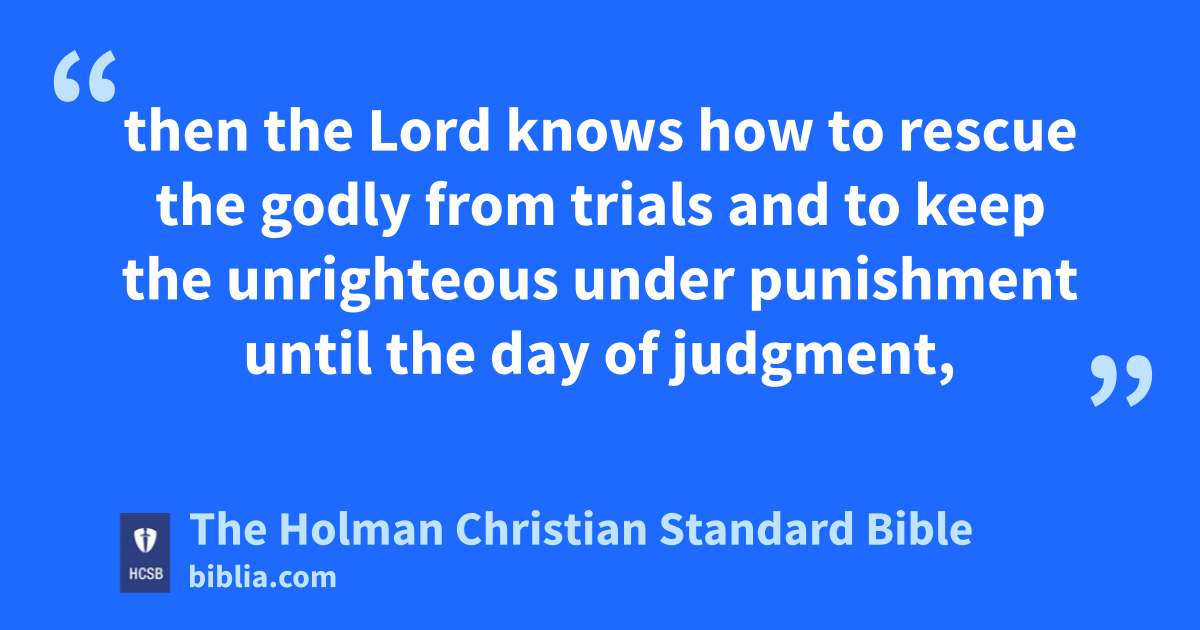 4 For if God didn’t spare r the angels who sinned but threw them down into Tartarus s t and delivered them to be kept in chains u of darkness until judgment; v 5 and if He didn’t spare the ancient world, but protected Noah, w a preacher of righteousness, and seven others, x y when He brought a flood on the world of the ungodly; 6 and if He reduced the cities of Sodom and Gomorrah z to ashes and condemned them to ruin, a making them an example to those who were going to be ungodly; b c 7 and if He rescued righteous Lot, d distressed by the unrestrained behavior of the immoral 8 (for as he lived among them, that righteous man tormented himself day by day with the lawless deeds he saw and heard e)— 9 then the Lord knows how to rescue f the godly from trials and to keep the unrighteous under punishment until the day of judgment, g 10 especially those who follow the polluting desires of the flesh and despise authority. h