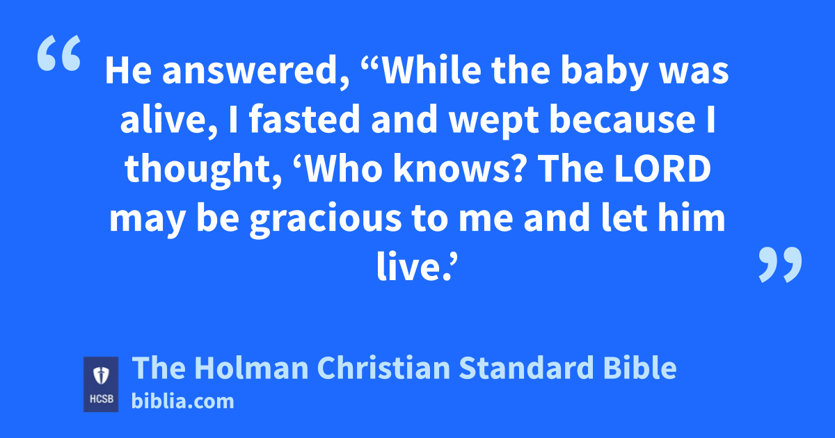 22 He answered, “While the baby was alive, I fasted and wept because I thought, ‘Who knows? The Lord may be gracious to me and let him live.’ 23 But now that he is dead, why should I fast? Can I bring him back again? I’ll go to him, but he will never return to me.” y