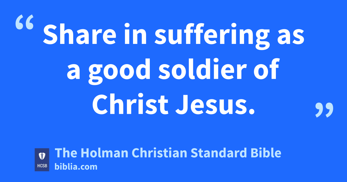 3 Share in suffering as a good soldier of Christ Jesus. s 4 No one serving as a soldier gets entangled in the concerns of civilian life; he seeks to please the recruiter. 5 Also, if anyone competes as an athlete, he is not crowned unless he competes according to the rules. 6 The hardworking farmer ought to be the first to get a share of the crops. t 7 Consider what I say, for the Lord will give you understanding in everything.