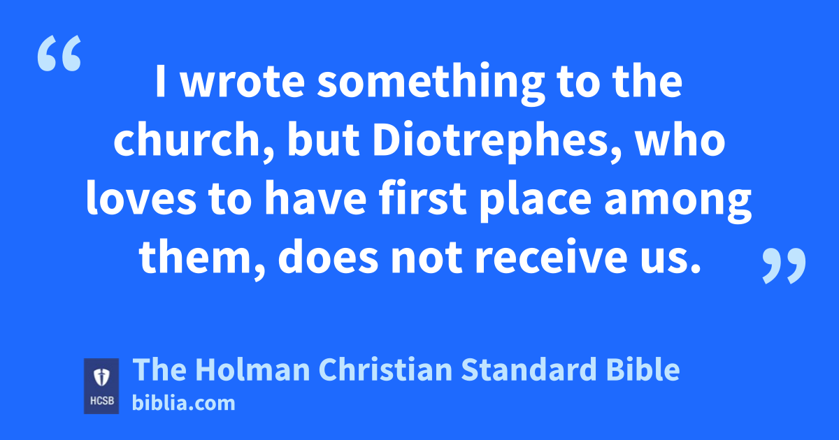 9 I wrote something to the church, but Diotrephes, who loves to have first place among them, s does not receive us. t 10 This is why, if I come, I will remind him of the works he is doing, slandering u us with malicious words. And he is not satisfied with that! He not only refuses to welcome the brothers himself, but he even stops those who want to do so and expels them from the church.