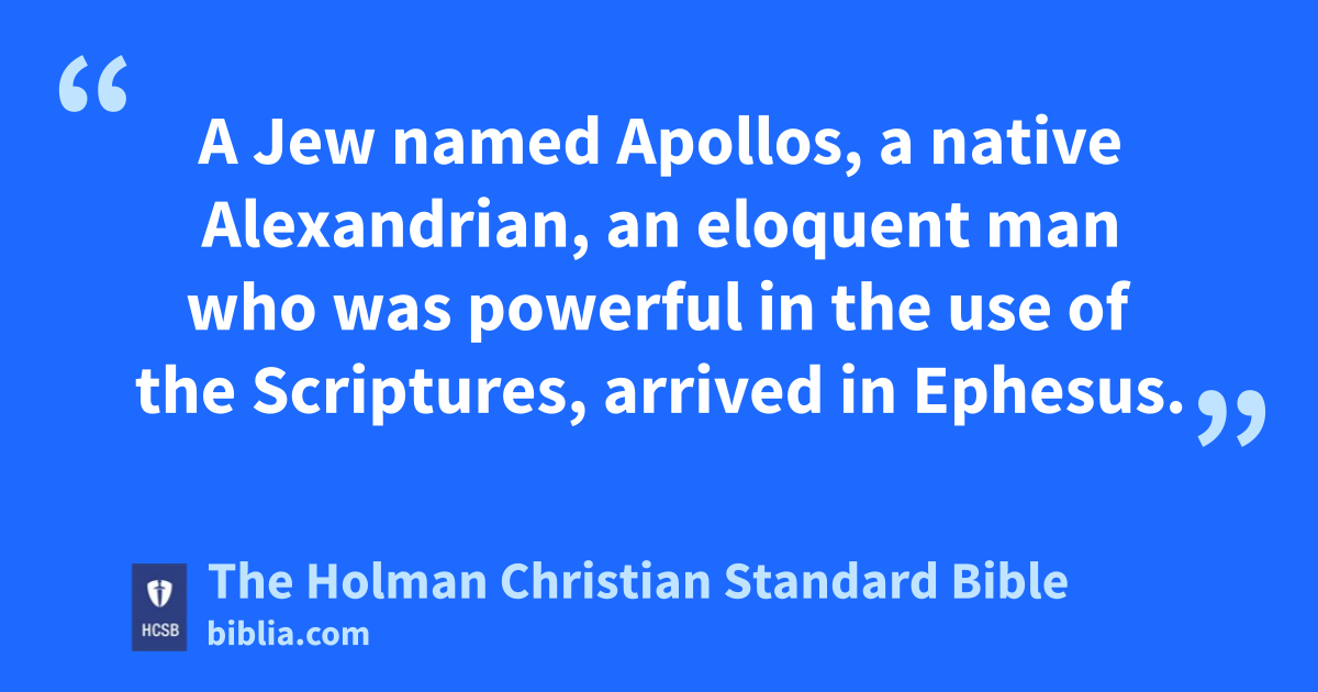 24 A Jew named Apollos, z a native Alexandrian, an eloquent man who was powerful in the use of the Scriptures, arrived in Ephesus. 25 This man had been instructed in the way of the Lord; and being fervent in spirit, a he spoke and taught the things about Jesus accurately, although he knew only John’s baptism. b 26 He began to speak boldly in the synagogue. After Priscilla and Aquila heard him, they took him home c and explained the way of God to him more accurately. d 27 When he wanted to cross over to Achaia, the brothers wrote to the disciples urging them to welcome him. After he arrived, he greatly helped those who had believed through grace. e 28 For he vigorously refuted the Jews in public, demonstrating through the Scriptures that Jesus is the Messiah. f