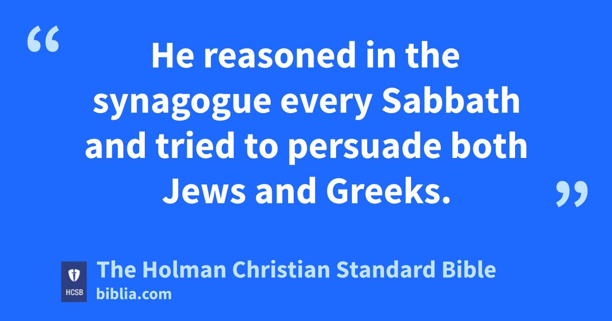 18 After this, he w left Athens and went to Corinth, x 2 where he found a Jewish man named Aquila, y a native of Pontus, who had recently come from Italy with his wife Priscilla because Claudius z had ordered all the Jews to leave Rome. Paul came to them, 3 and being of the same occupation, stayed with them and worked, for they were tentmakers a by trade. b 4 He reasoned in the * synagogue every Sabbath and tried to persuade both Jews and Greeks. c