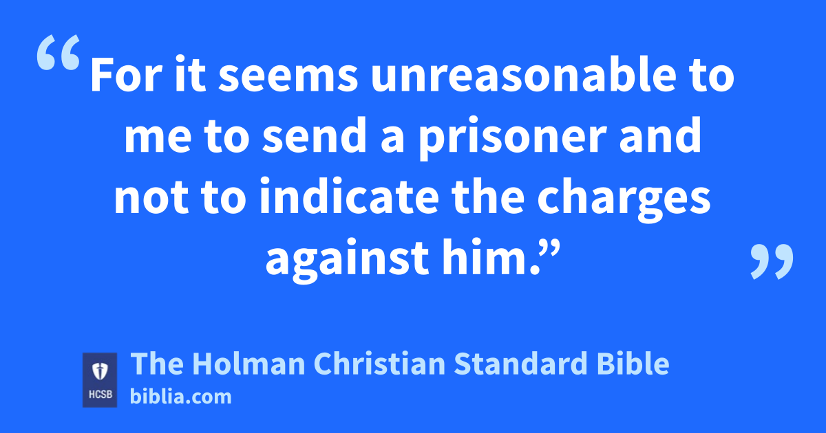 23 So the next day, Agrippa and Bernice o came with great pomp and entered the auditorium with the commanders and prominent men of the city. When Festus gave the command, Paul was brought in. 24 Then Festus said: “King Agrippa and all men present with us, you see this man about whom the whole Jewish community has appealed to me, both in Jerusalem and here, shouting that he should not live any longer. p 25 Now I realized that he had not done anything deserving of death, but when he himself appealed to the Emperor, I decided to send him. q 26 I have nothing definite to write to my lord about him. Therefore, I have brought him before all of you, and especially before you, King Agrippa, so that after this examination is over, I may have something to write. 27 For it seems unreasonable to me to send a prisoner and not to indicate the charges against him.”