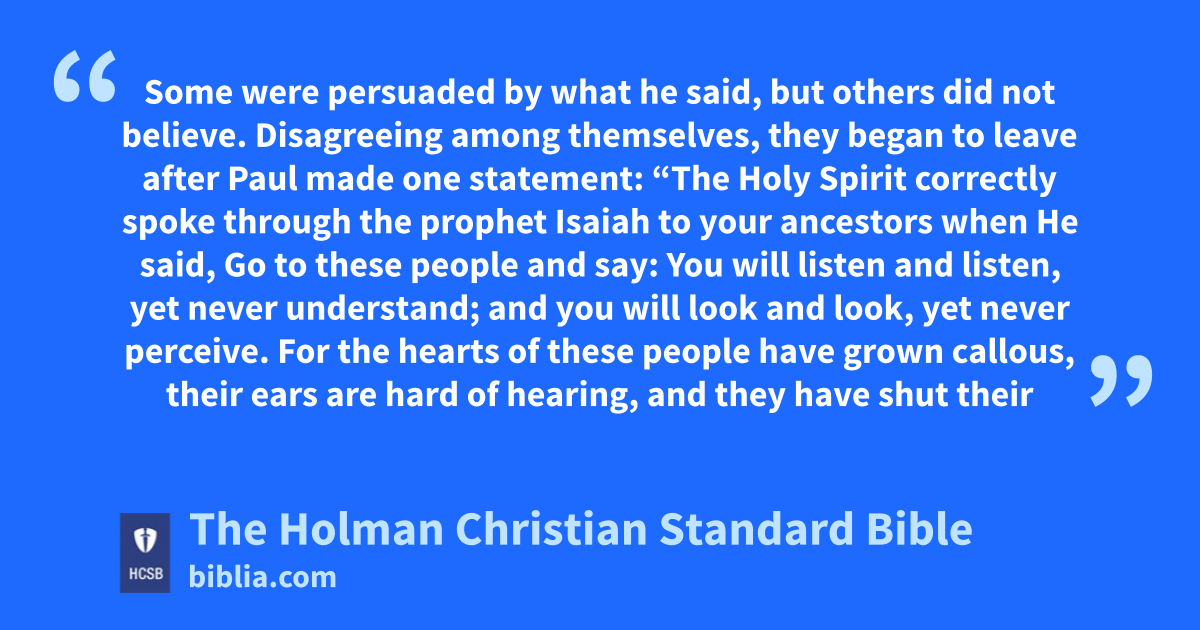 25 Disagreeing among themselves, they began to leave after Paul made one statement: “The Holy Spirit correctly spoke through the prophet Isaiah to your l ancestors 26 when He said,