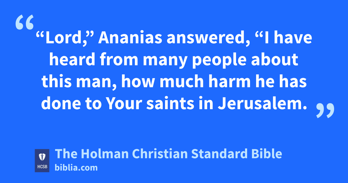 13 “Lord,” Ananias answered, “I have heard from many people about this man, how much harm he has done to Your * saints in Jerusalem. j 14 And he has authority here from the * chief priests to arrest all who call on Your name.” k