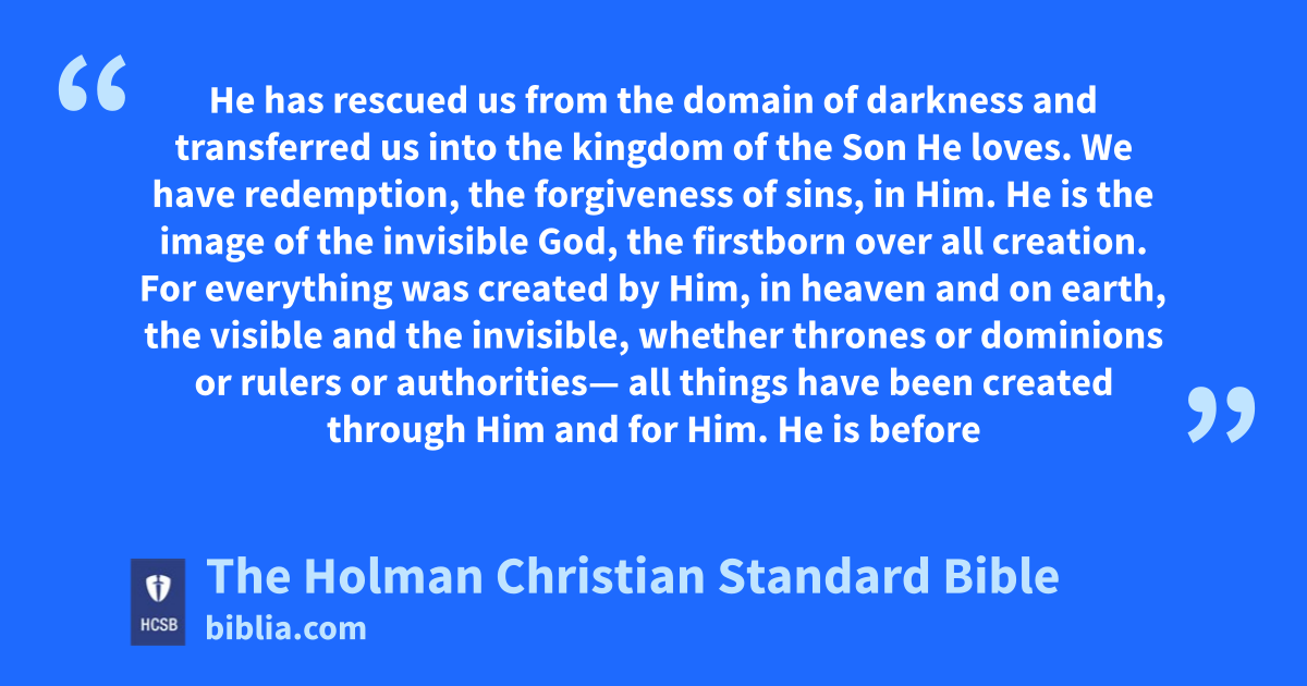 9 For this reason also, since the day we heard this, we haven’t stopped praying for you. We are asking o that you may be filled with the knowledge p of His will q in all wisdom and spiritual understanding, r 10 so that you may * walk worthy of the Lord, fully pleasing to Him, bearing fruit in every good work s and growing in the knowledge of God. t 11 May you be strengthened u with all power, v according to His glorious w might, for all endurance and patience, with joy 12 giving thanks to the Father, who has enabled you x to share in the saints’ y inheritance in the light. z 13 He has rescued a us from the domain of darkness and transferred us into the kingdom b of the Son c He loves. d 14 We have * redemption, e the forgiveness of sins, in Him.