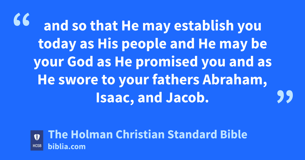 10 “All of you are standing today before the Lord your God—your leaders, tribes, elders, officials, all the men of Israel, 11 your children, your wives, and the foreigners in your camps who cut your wood and draw your water— 12 so that you may enter into the covenant of the Lord your God, which He is making with you today, so that you may enter into His oath 13 and so that He may establish you today as His people and He may be your God as He promised you and as He swore to your fathers Abraham, Isaac, and Jacob. y 14 I am making this covenant and this oath not only with you, 15 but also with those who are standing here with us today in the presence of the Lord our God and with those who are not here today.