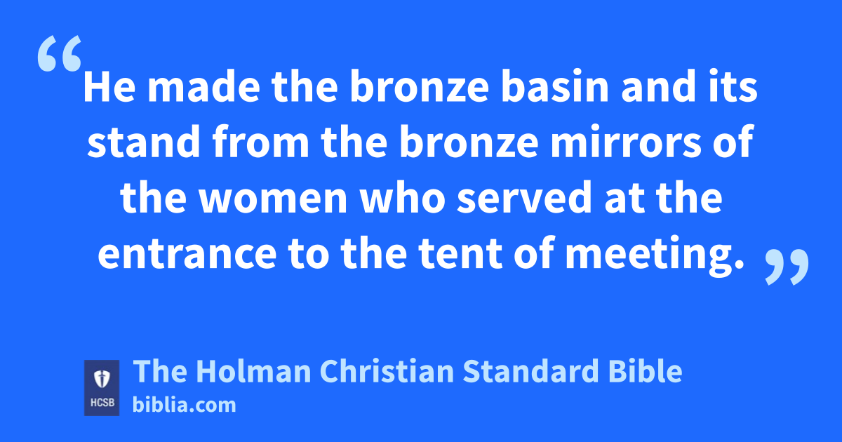 8 He made the bronze basin and its stand from the bronze mirrors of the women who served at the entrance to the tent of meeting. k
